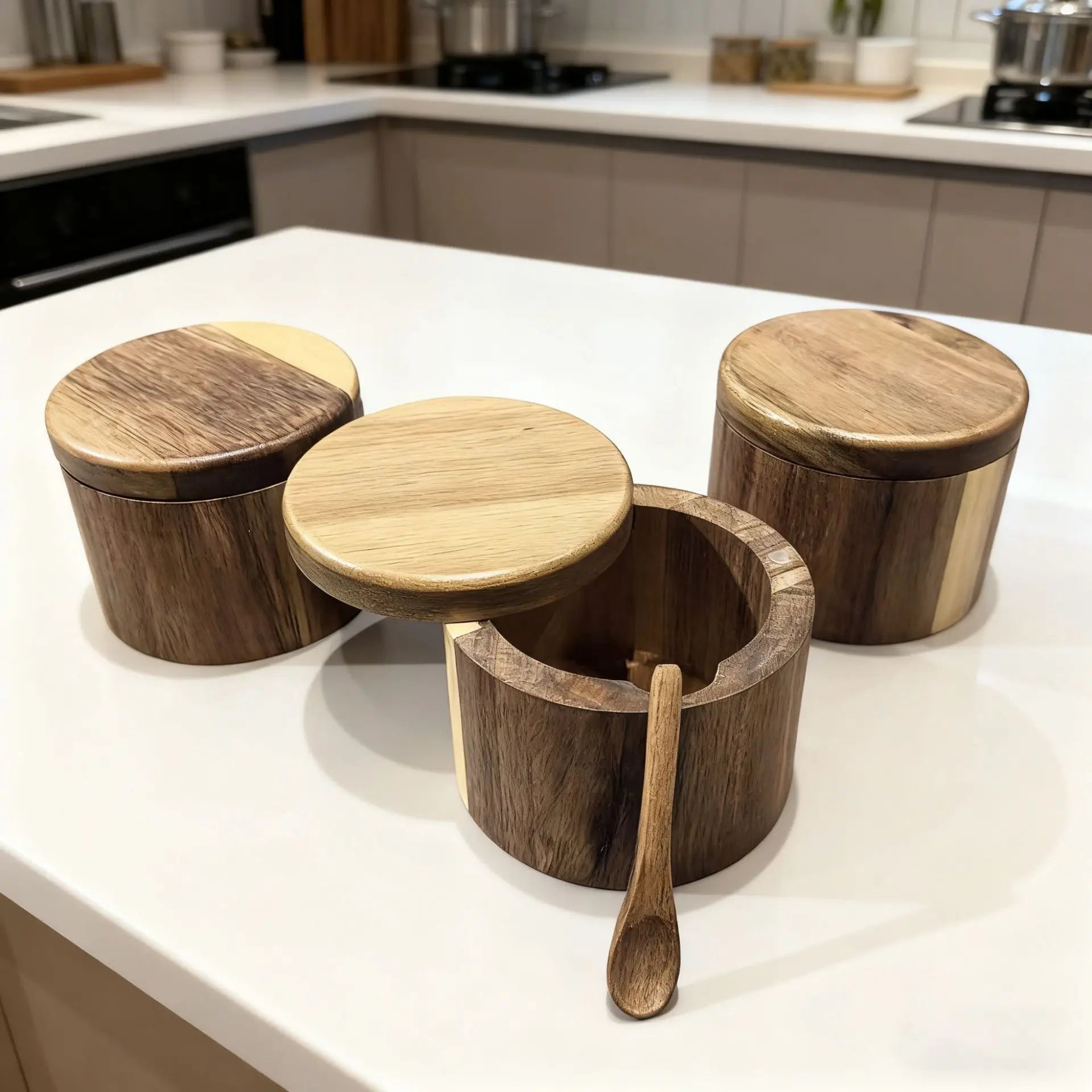 The most important ingredients in your kitchen deserve more than a plastic jar. The Tiered Acacia Spice Vault is a heavy-duty, beautiful solution for the cook who treats their spices like gold. Carved from solid Acacia—a wood prized for its rich, swirling grain and natural durability—this vault protects your spices from the chaos of the kitchen while putting them on stunning display.